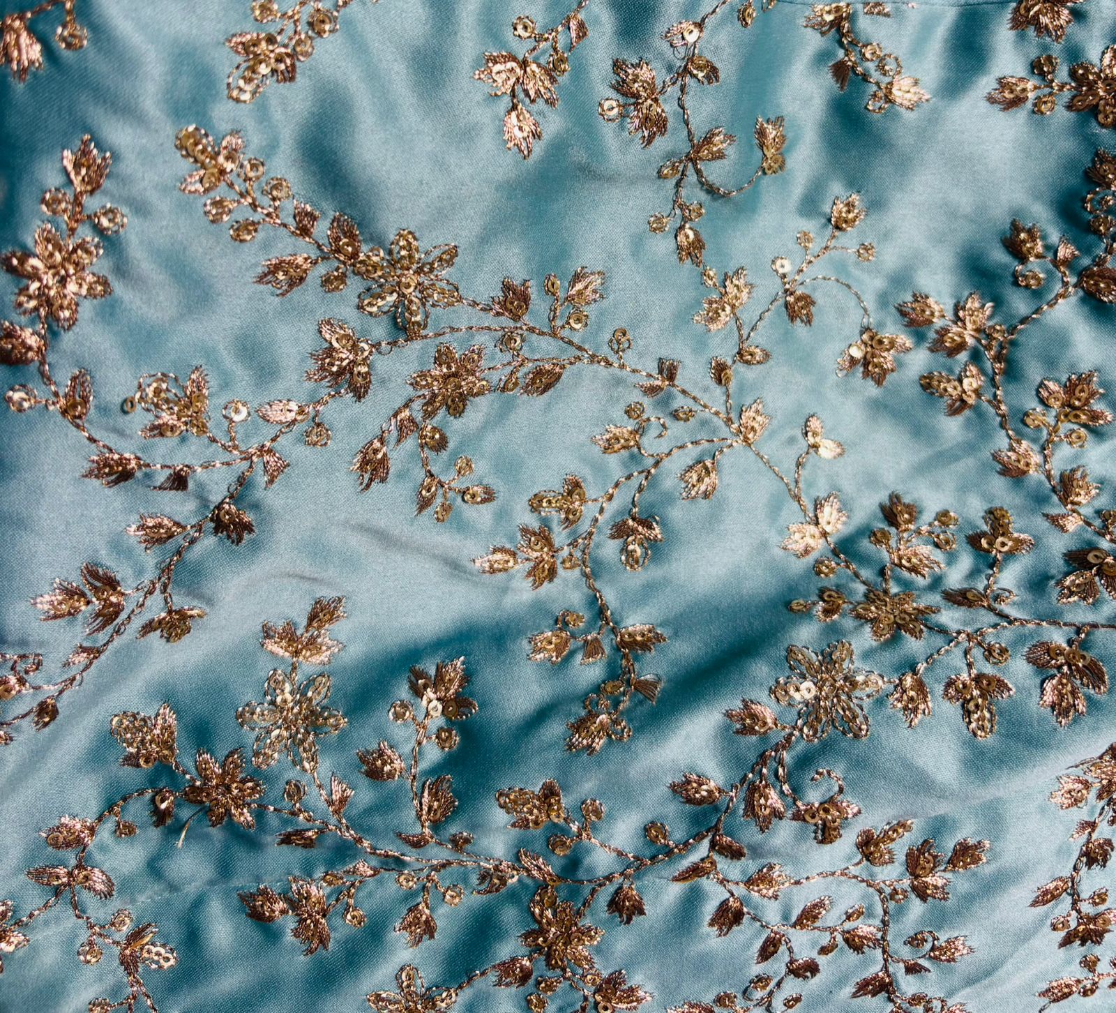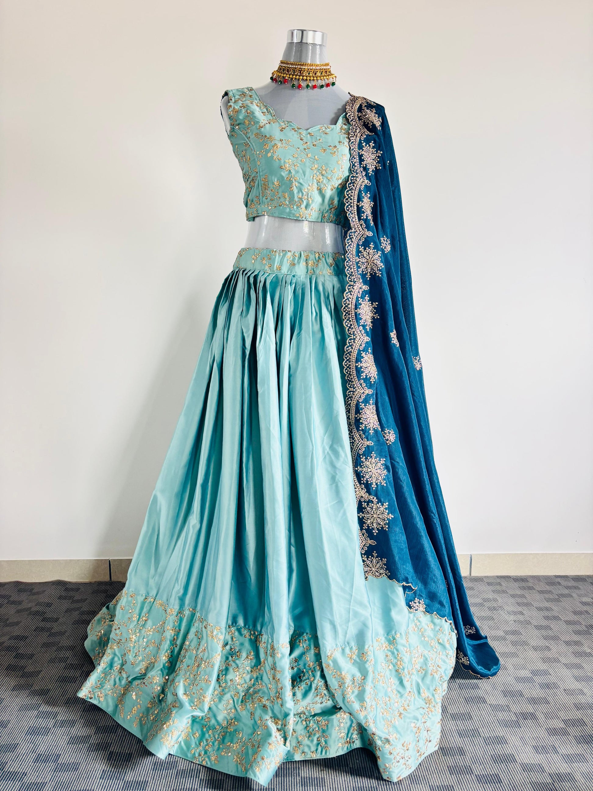 Aqua Blue Lehenga with Navy Dupatta & Golden Embroidery