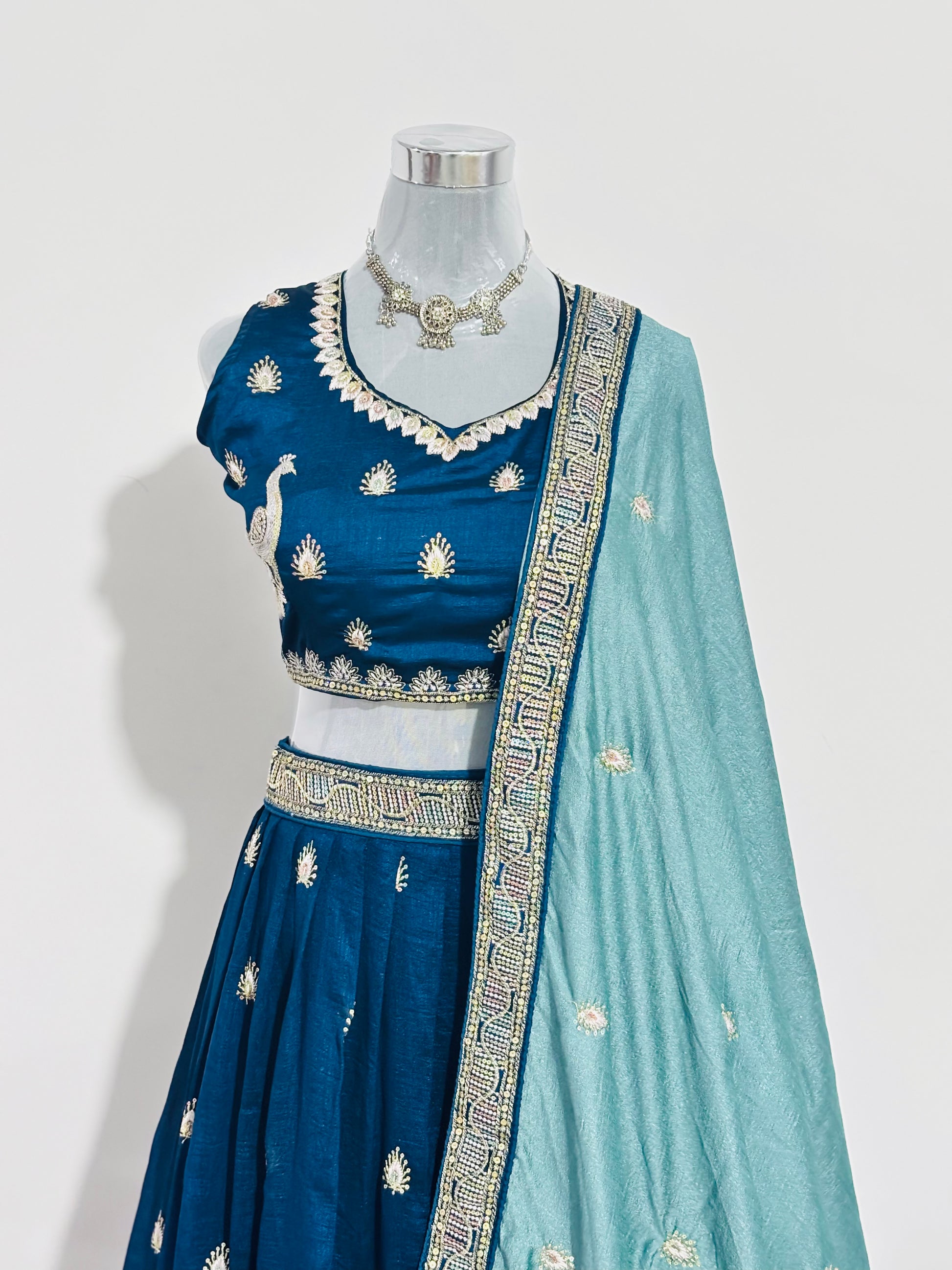 Lehenga has adjustable drawstring/side zipper & cancan (varies by style).